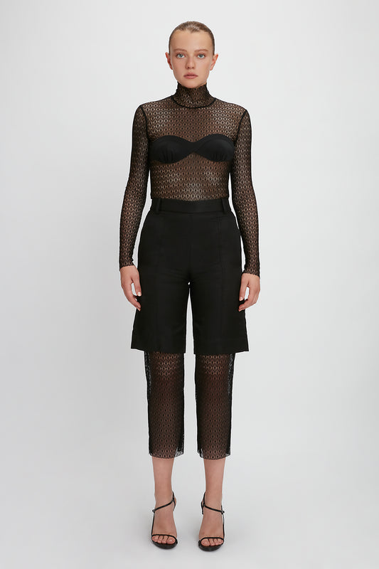 BLACK STRETCH MESH PANEL LONG-SLEEVE TOPRegular price £122.00 GBPRegular priceUnit price / per-