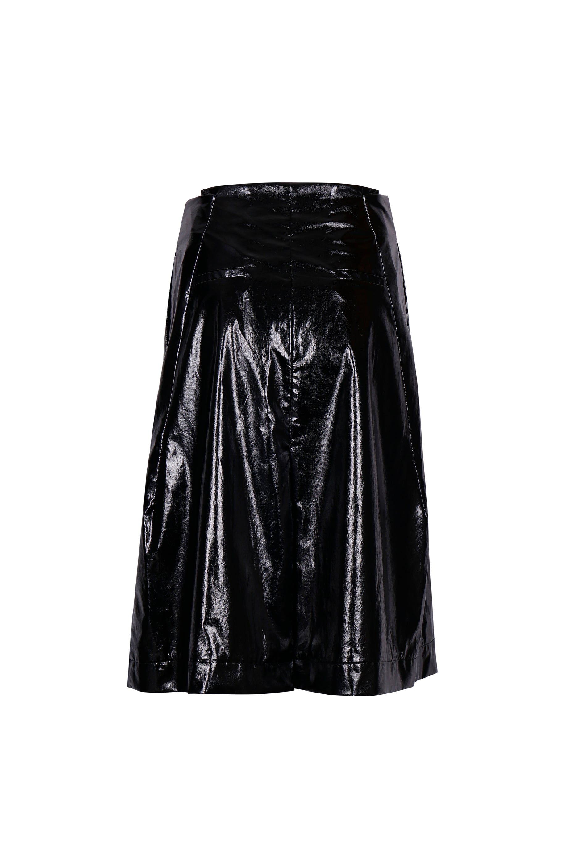 BLACK GLOSSY COTTON-COATED WRAP SKIRT
