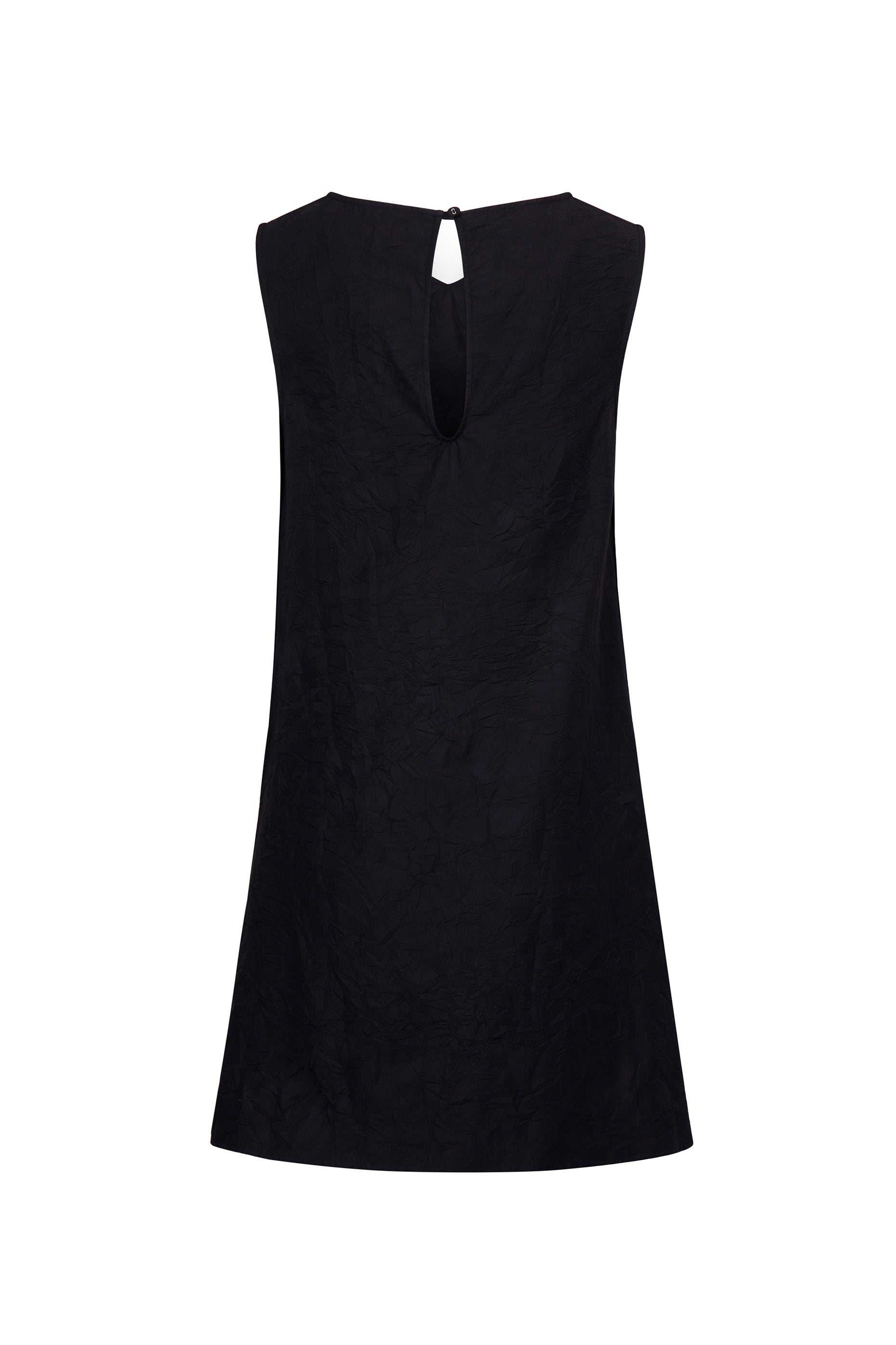 Designed with a clean scoop neckline and finished with a keyhole back and button closure for ease. Style with heeled loafers or sheer tights for a refined, understated look — ideal for evening settings or artistic daywear.