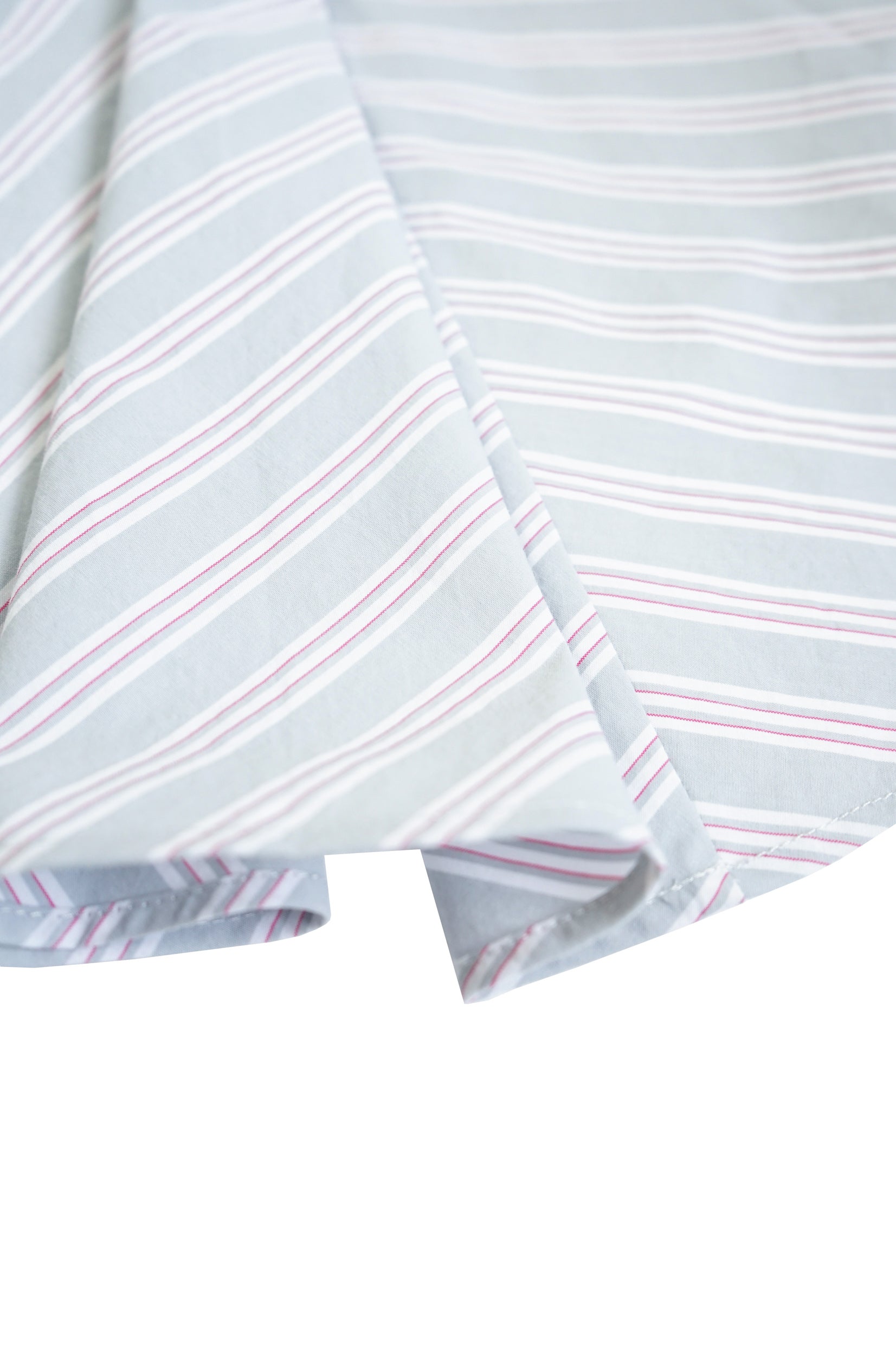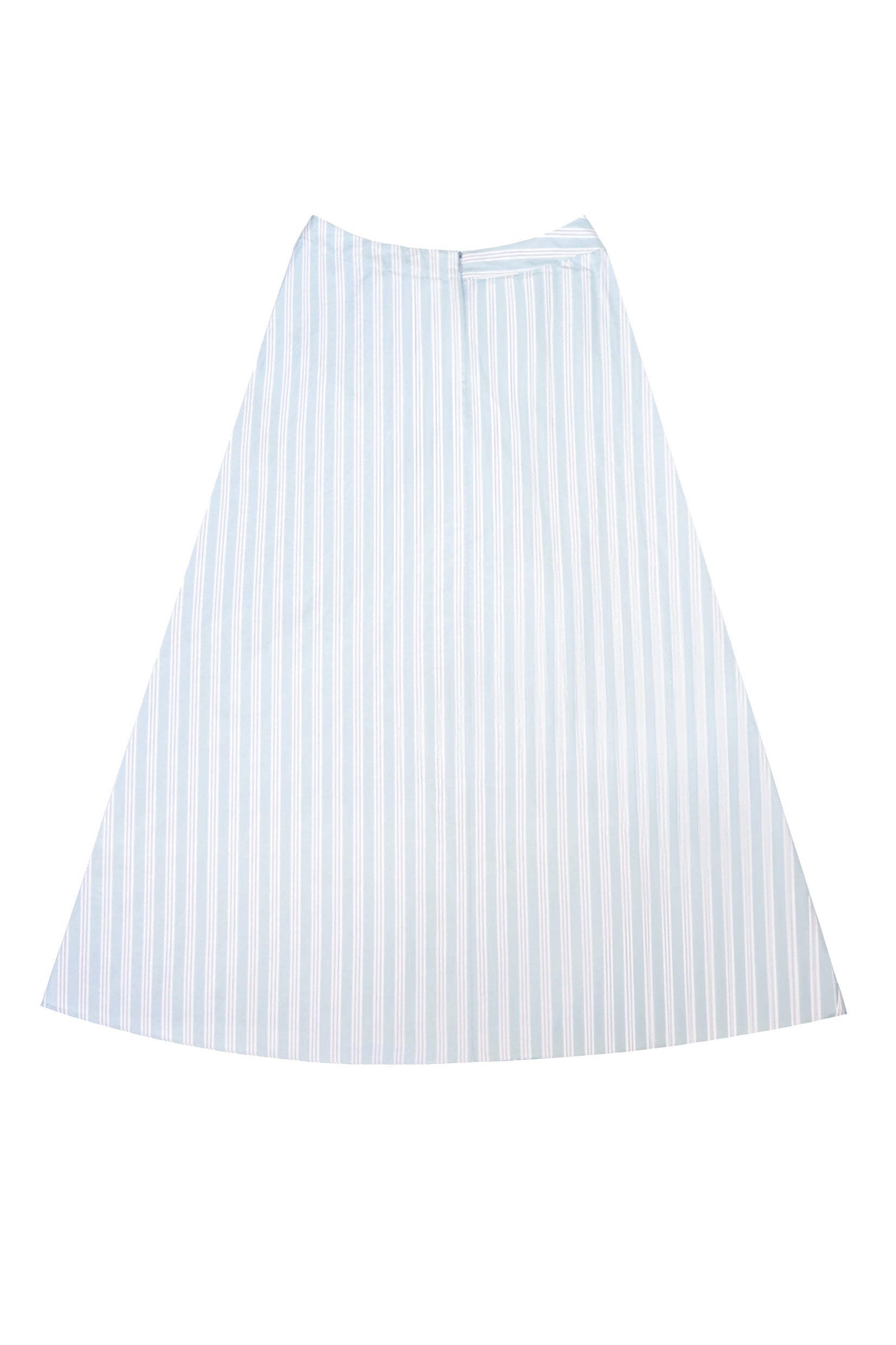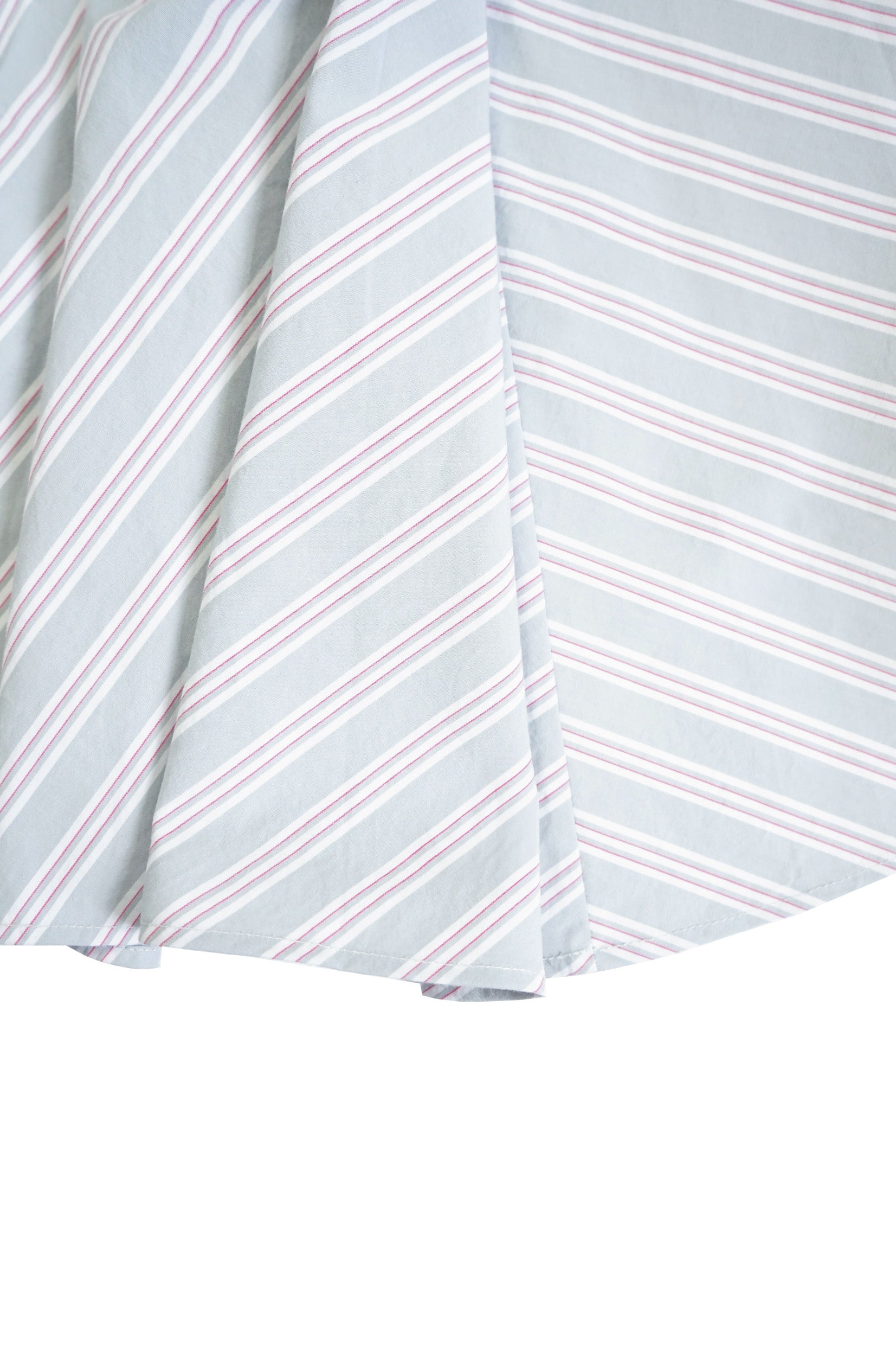This skirt is crafted from sand-washed striped cotton, offering a soft touch and natural creasing that conveys an easy, relaxed aesthetic. The twisted construction shapes a dimensional silhouette, while diagonal pleats at the front disrupt the symmetry of the stripes, creating a unique sense of visual tension and movement. Balancing wearability with distinct design, it’s well-suited for both everyday wear and smart-casual occasions.