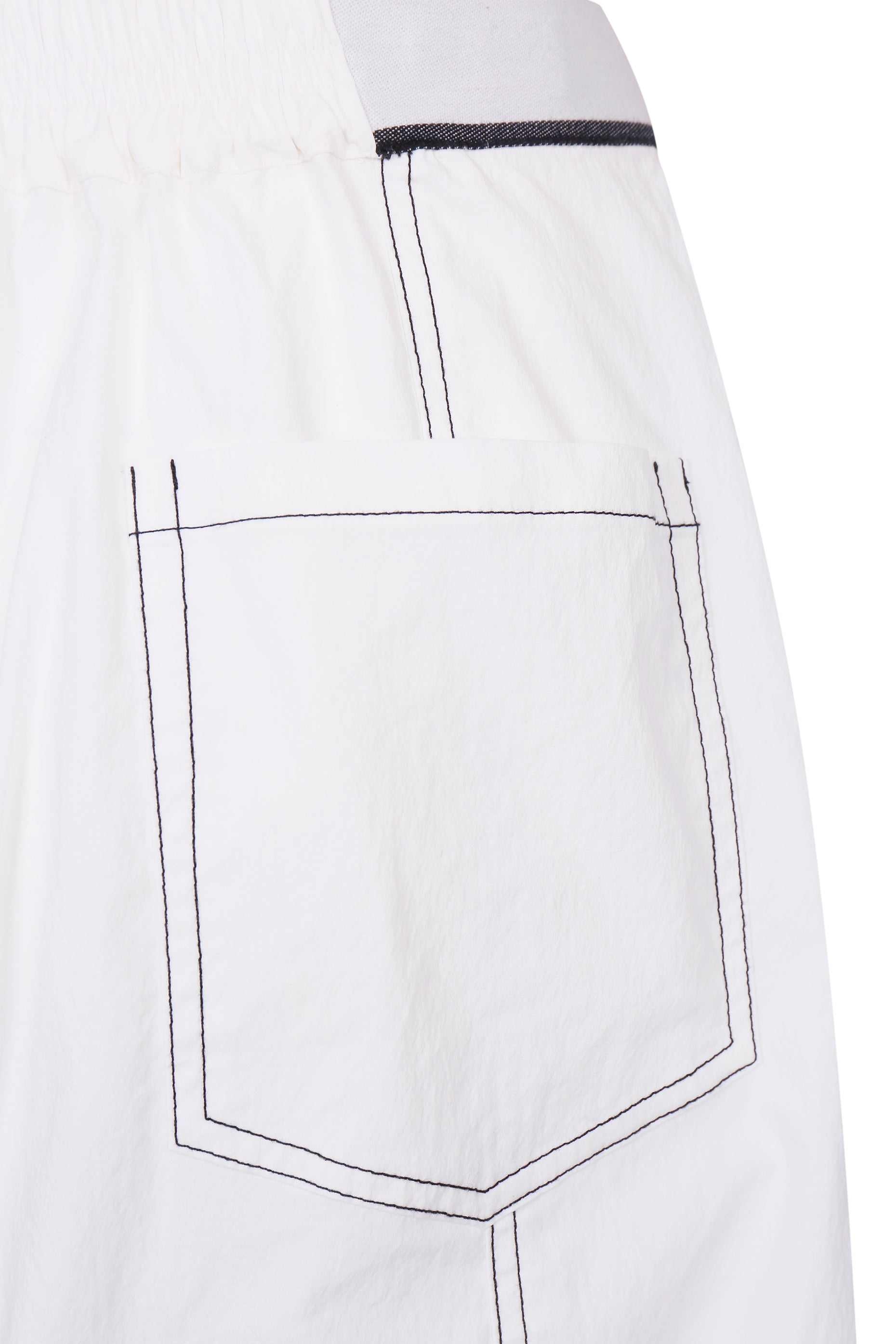 WASHED WHITE COTTON CONTRAST STITCH TROUSERS