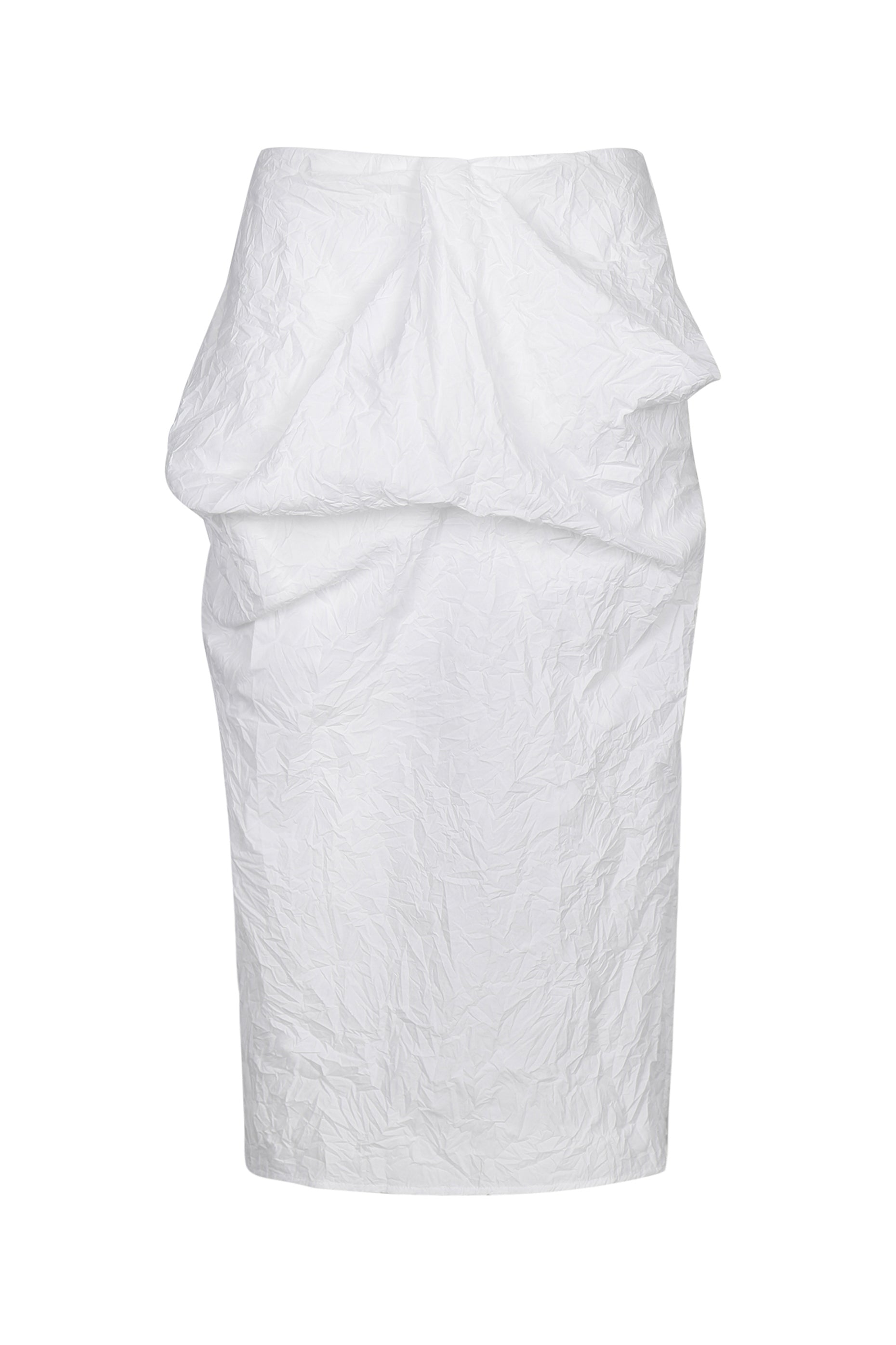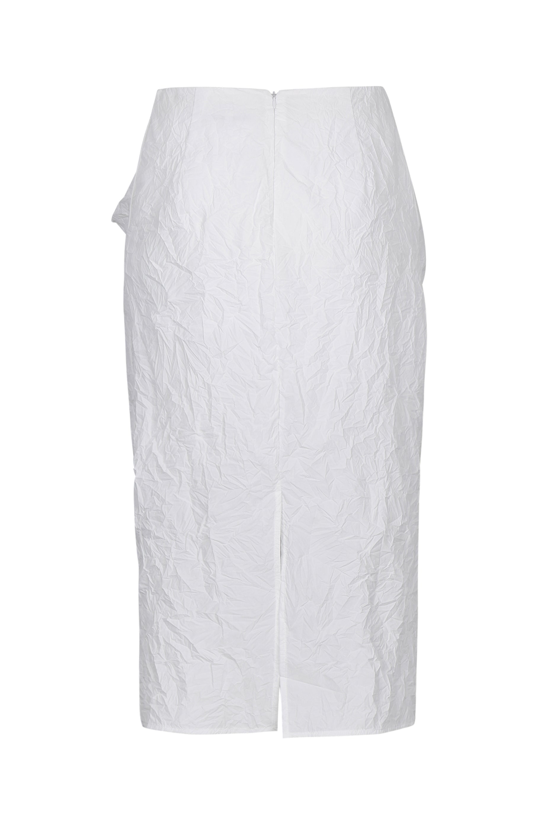 WHITE CRINKLED TEXTURE DRAPED MIDI SKIRT