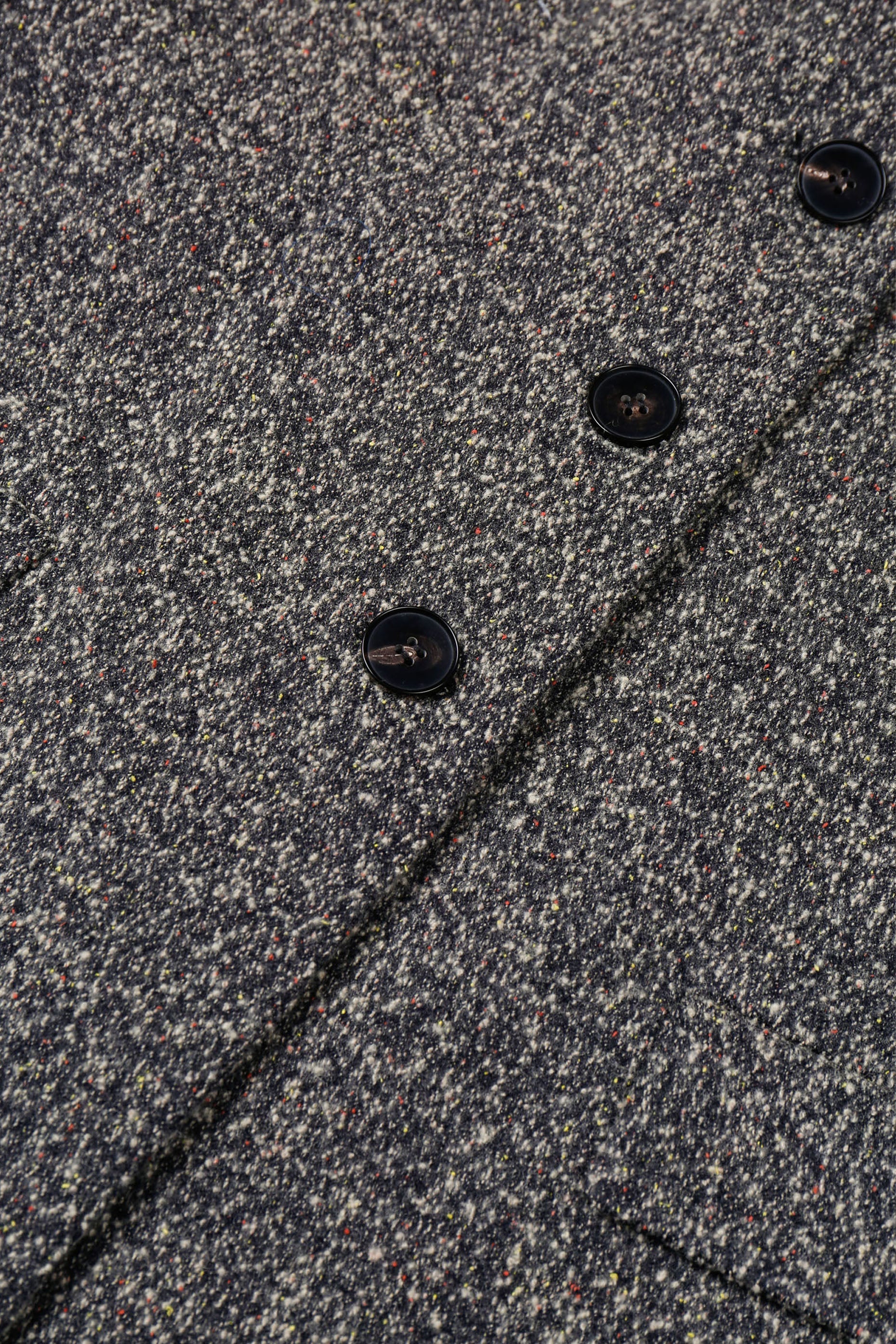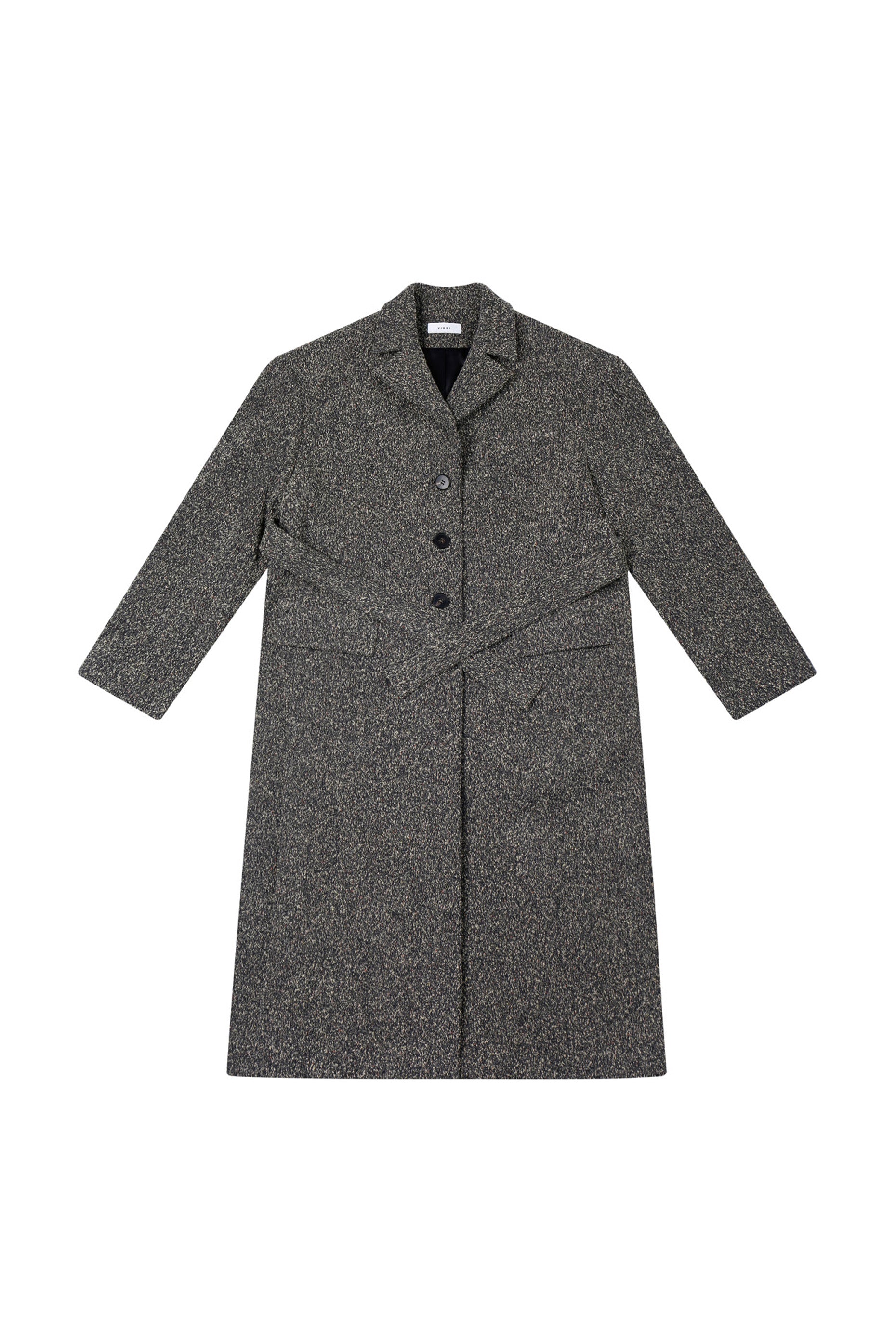 This elegant long coat is crafted from a high-quality blend of materials, including 45% wool, 30% cotton, 2.8% silk, 14% linen, and 8.2% nylon, offering a unique combination of warmth, texture, and durability. The speckled, textured finish adds depth and sophistication to its structured silhouette. Designed for a relaxed, oversized fit with a very slight waist contour, it features clean lines and minimalist details, making it a versatile piece for any wardrobe.