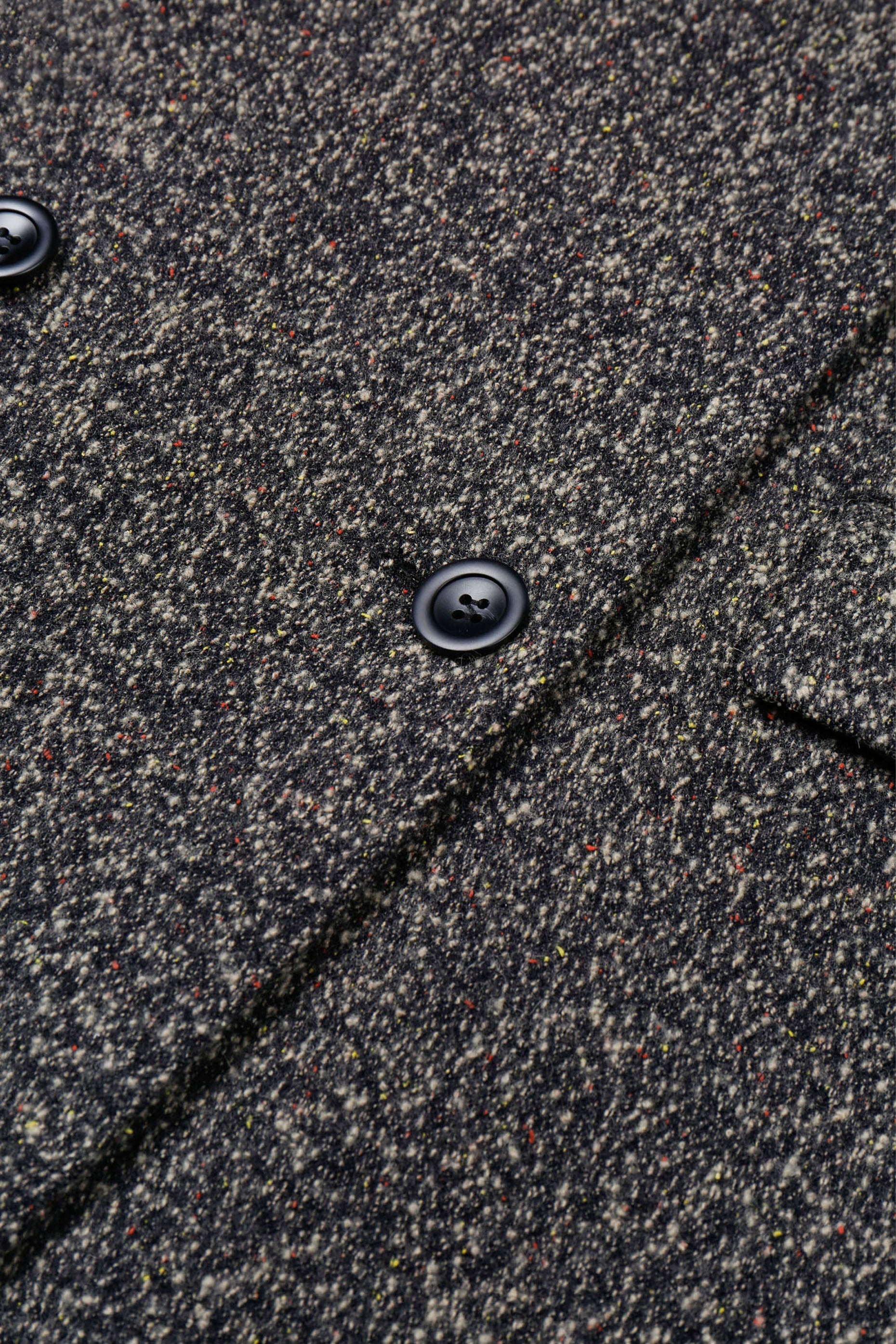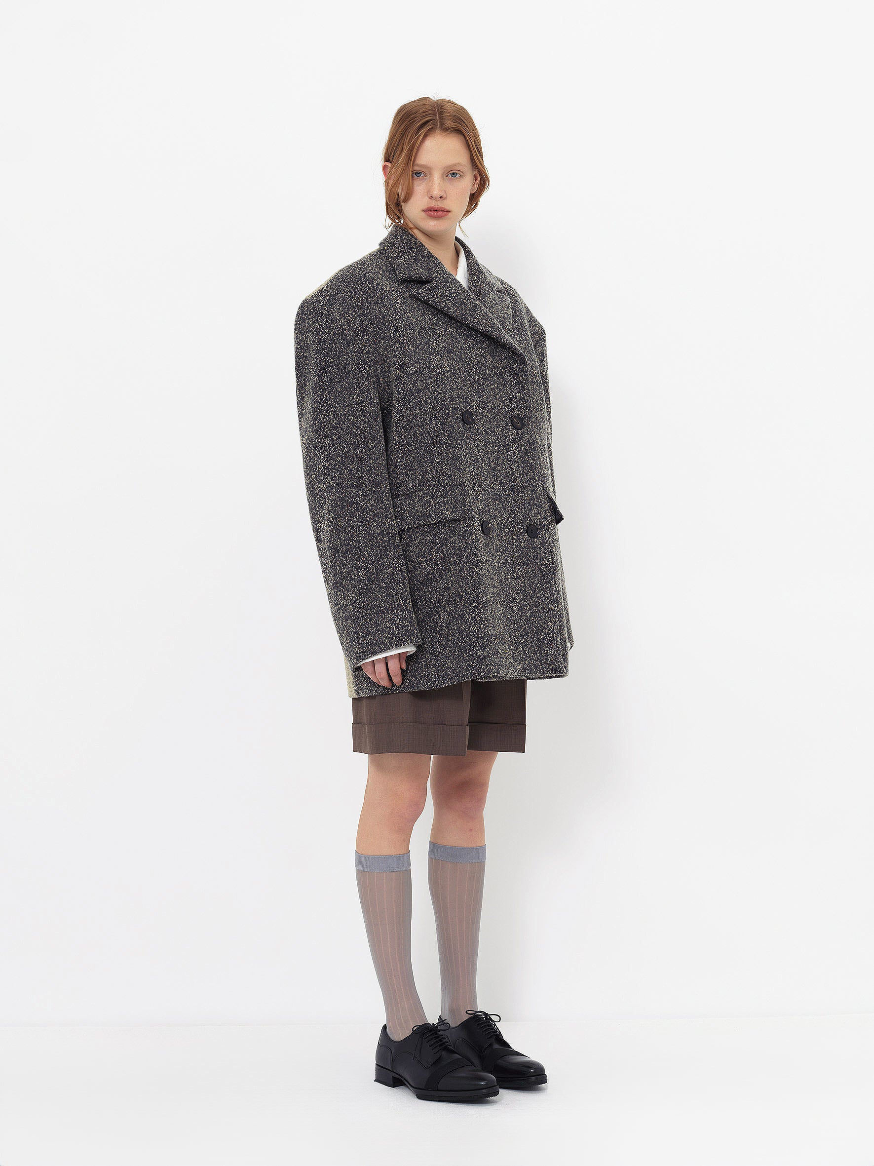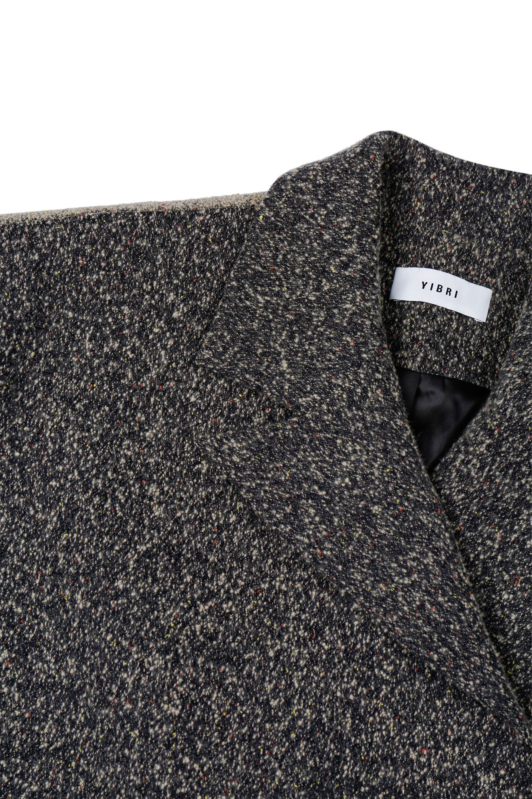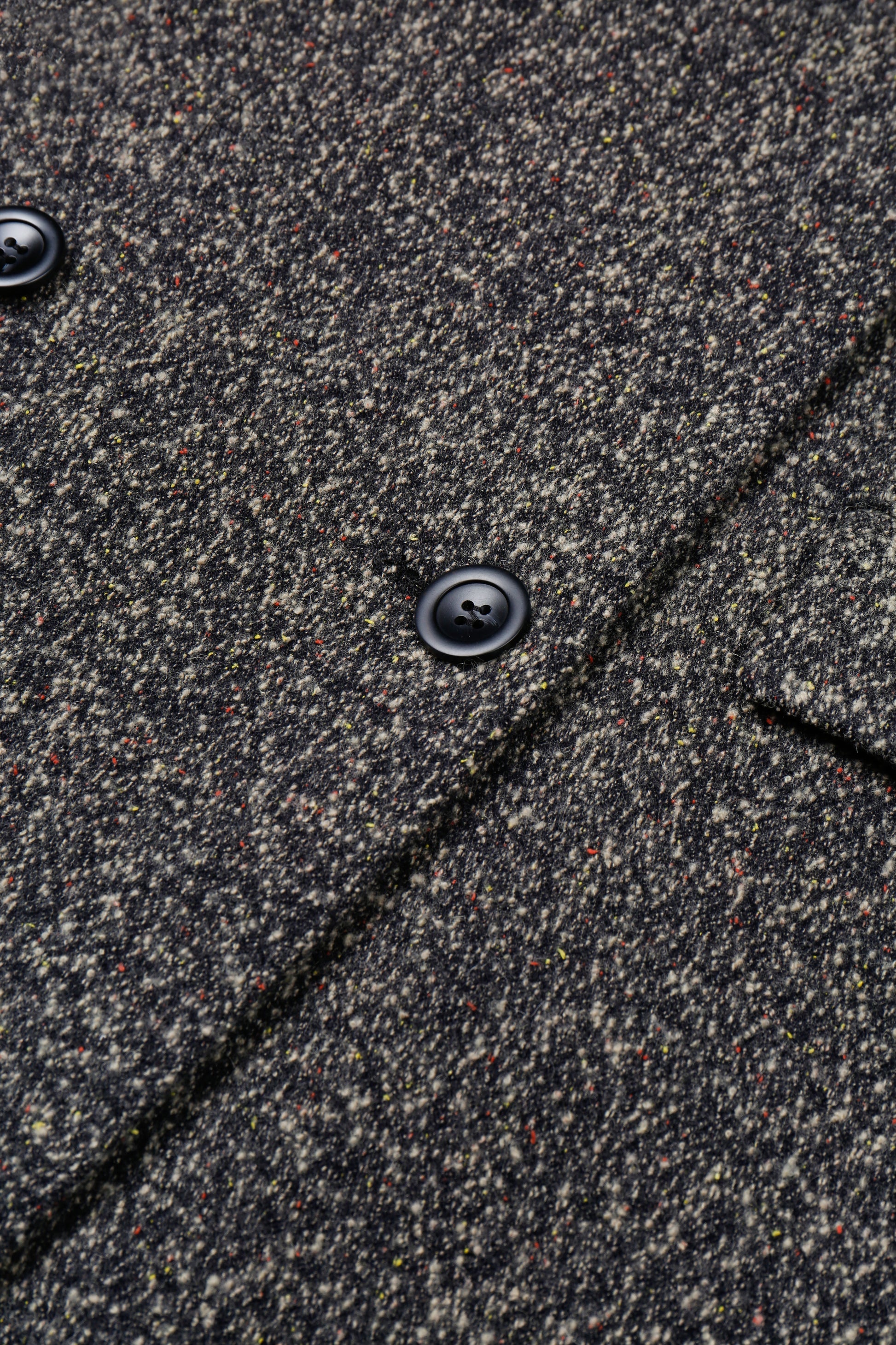 A refined reinterpretation of a classic menswear silhouette, this double-breasted jacket is crafted from YIBRI’s signature double face wool blend. The tactile, speckled surface gives the garment a quiet depth, balancing warmth with a softly structured handfeel.